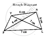 Given PLAY, PL = 7 cm, LA = 6 cm, AY = 6 cm, PA = 8 cm and LY = 7 cm