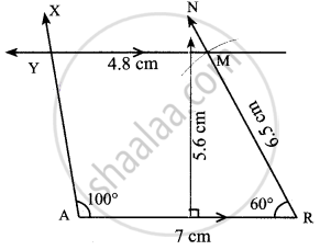 ARMY with `bar("AR") || bar("YM")`, AR = 7 cm, RM = 6.5 cm ∠RAY = 100° and ∠ARM = 60°