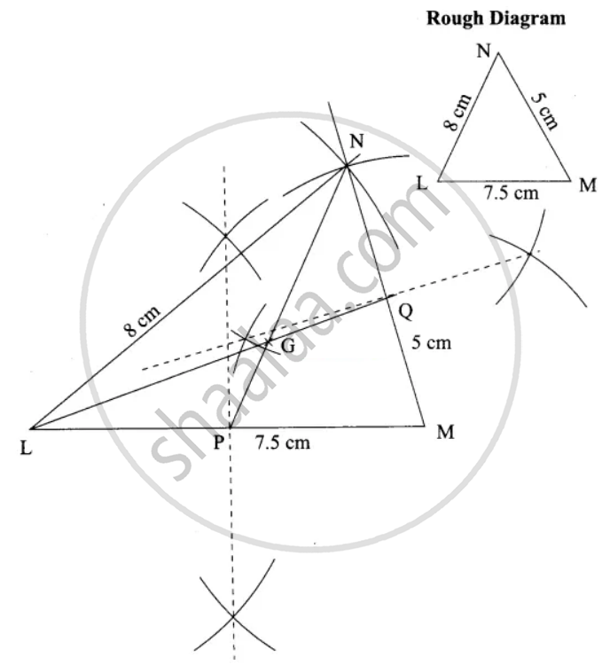 Construct the ΔLMN such that LM = 7.5 cm, MN = 5 cm and LN = 8 cm. Locate its centroid