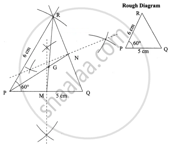 Construct the ΔPQR such that PQ = 5 cm, PR = 6 cm and ∠QPR = 60° and locate its centroid