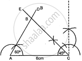 Construct traingle ABC, when : AC = 6 cm, ∠A = 60“ and ∠C = 45°. Measure AB and BC.