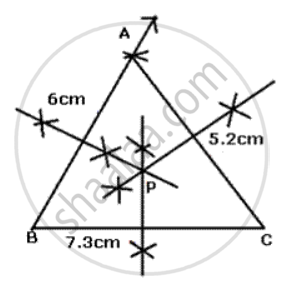 Construct a triangle ABC, such that AB= 6 cm, BC= 7.3 cm and CA= 5.2 cm. Locate a point which is equidistant from A, B and C.