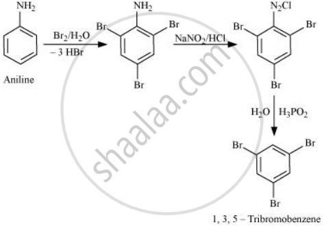 Convert aniline into 1, 3, 5-tribromobenzene.