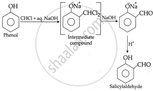 When phenol reacts with chloroform in the presence of a base, such as NaOH, salicylaldehyde is produced. The reaction is called the Reimer-Tiemann reaction.