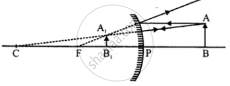 Copy the figure. By taking two rays from point A, show the formation of image. State four characteristics of the image.
