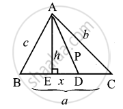 D is the mid point of side BC and AE ⊥ BC. If BC = a, AC = b, AB = c, ED = x, AD = p and AE = h, prove that c2 = `"p"^2 - "a"x + "a"^2/4`