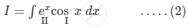 \[ \Rightarrow I = \cos x\int e^x dx - \int\left[ \frac{d}{dx}\left( \cos x \right)\int e^x dx \right]dx\]