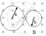 A plane loop is shaped in the form as shown in figure with radii a = 20 cm and b = 10 cm and is placed in a uniform time varying magnetic field B = B0 sin ωt, where B0 = 10 mT and ω = 100 rad/s. The amplitude of the current induced in the loop if its resistance per unit length is equal to 50 × 10-3 Ω/m. The inductance of the loop is negligible is ______ A.