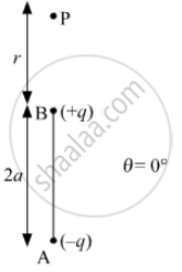 `V=q/(4piepsilon_0r)[(2a)/rcostheta]`