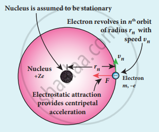 `1/(4 piepsilon_0) ("Ze"^2)/("r"_"n"^2) = ("mv"_"n"^2)/"r"_"n"`