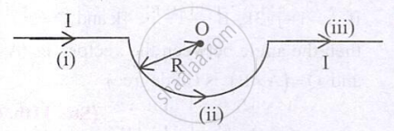 A wire has three different sections as shown in figure. The magnitude of the magnetic field produced at the centre '0' of the semicircle by three sections together is (μ0 = permiability of free space) ______.