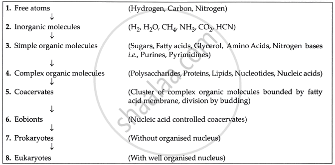 The Oparin-Haldane theory, commonly known as the chemical or naturalistic theory. Life was assumed to have evolved gradually around 4000 - 3600 million years ago. According to Oparin-Haldane’s theory of evolution, life on Earth emerged through physicochemical processes that resulted in the formation of both inorganic and organic components. The interaction of organic compounds resulted in the formation of macromolecules, which eventually formed the first living system or cells. According to the hypothesis, ‘life’ evolved spontaneously on Earth from non-living elements. Environmental changes led to the formation of both inorganic and organic molecules. Chemical evolution cannot occur under current environmental conditions on Earth. Life originated only on primitive Earth, which had favourable conditions.