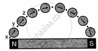 The bar magnet is placed on a sheet of paper and its boundary is drawn with a sharp pencil. A point X is marked along the boundary towards the north of the magnet.