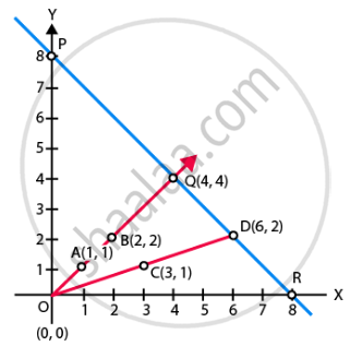 Similarly, plotting the point P(0, 8), Q(4, 4) and R(8, 0), we get the straight line PQR.