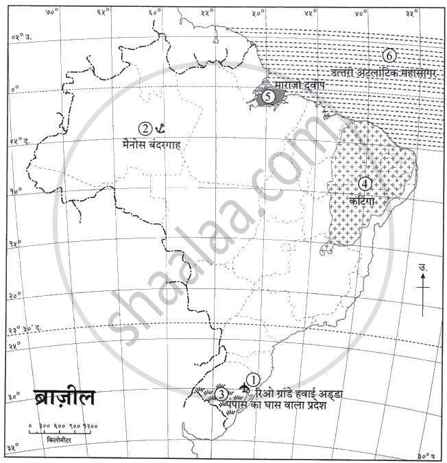 दिए गए ब्राज़ील के मानचित्र में निम्न घटक दर्शाकर नाम लिखिए एवं सूची तैयार कीजिए: