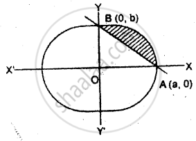 दीर्घवृत्त `x^2/"a"^2 + "y"^2/"b"^2 = 1` एवं रेखा `x/"a" + "y"/"b" = 1` से घिरे लघु क्षेत्र का क्षेत्रफल ज्ञात कीजिए।