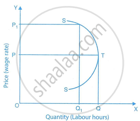 The product’s supply is OQ when the price is OP, but it drops to OQ1 when the price reaches OP1. Consequently, beyond point T, the supply curve slopes negatively.