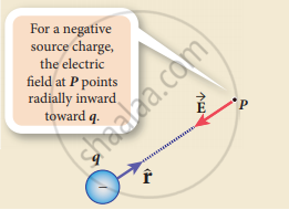 - If the charge q is positive then the electric field points away from the source charge and if q is negative, the electric field points towards the source charge q. This is shown in the following figure.