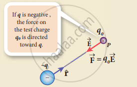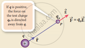 Electric field of positive and negative charges - If the electric field at a point P is `vec"E"`, then the force experienced by the test charge q0 placed at the point P is `vec"F" = "q"_0 vec"E"`. This is Coulomb’s law in terms of electric field. This is shown below in Figure.
