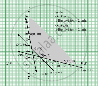 The corner points of the feasible region are B(0, 10), G(1,5), H(4,2) and E(12,0).