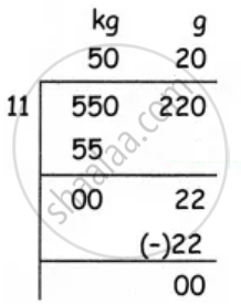 550 kg 220 g ÷ 11 = 50 kg 20 g