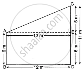 दो खंभे AB = 6m एवं CD = 11m समतल भूमि पर दूरी BD = 12m पर स्थित है उनके ऊपरी सिरों के बीच की दूरी AC है। (देखिए संलग्न आकृति) E से AE ⊥ CD खींचिए।