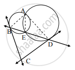 दोन वर्तुळे परस्परांना बिंदू A व E मध्ये छेदतात. बिंदू E मधून काढलेली त्यांची सामाईक वृत्तछेदिका वर्तुळांना बिंदू B व D मध्ये छेदते. बिंदू B व D मधून काढलेल्या स्पर्शिका एकमेकींना बिंदू C मध्ये छेदतात. सिद्ध करा : `square`ABCD चक्रीय आहे.