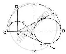 (vi) With P as centre and PD as a radius draw arcs to intersect the given circle at T and T'.
