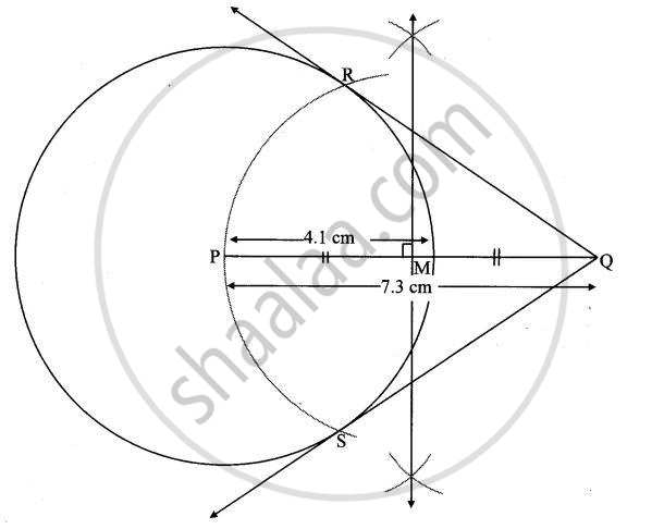 Draw a circle with radius 4.1 cm. Construct tangents to the circle from a point at a distance 7.3 cm from the centre.