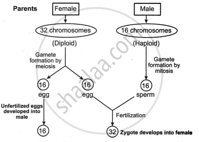Draw a flowchart to show the process of sex determination in honeybees. - Biology (Theory)