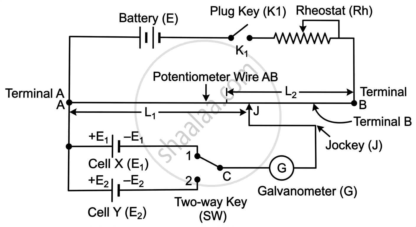 Draw a labelled circuit diagram of a potentiometer used to compare emfs of two given cells X and Y. (Procedure and formula are NOT required.)