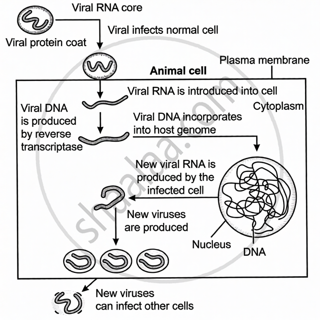 Draw a neat flowchart depicting the life cycle of a retrovirus in the infected human cell.