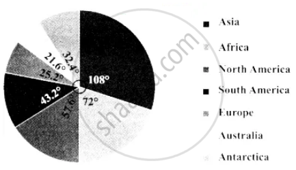 | Antarctica | 9% | `9/100 xx 360^circ` = 32.4° |