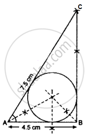 Draw a right angled triangle ABC with AB = 4.5 cm, AC = 7.5 cm and ∠B = 90°. Construct the incircle. Write the steps of construction also.