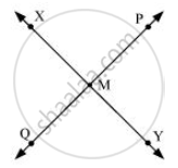 \[\overleftrightarrow{XY}\] and \[\overleftrightarrow{PQ}\] intersect at M.