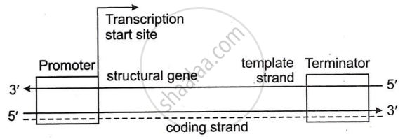 Draw a schematic representation of the structure of a transcription unit and show the following in it.