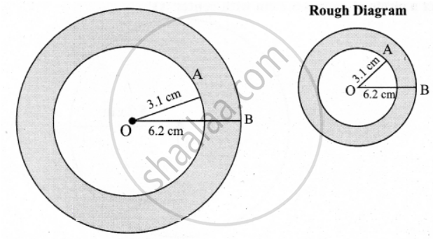 Width of the circular ring = OB – OA = 6.2 – 3.1 = 3.1 cm.