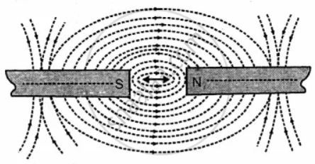 Draw diagram showing the arrangement of the lines of force for two magnets in line, with unlike poles facing one another.