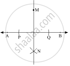 - Placing the compass point at point M and using any convenient distance, draw arcs to cut the line AB at two points P and Q.