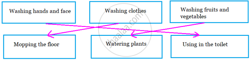 Draw lines using different colours to show which work will be done after the other so that the same water can be reused. One example has been given.