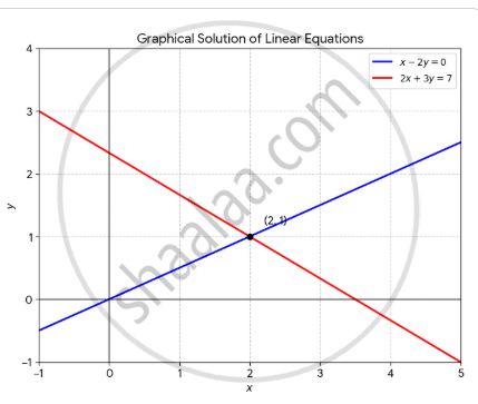 x – 2y = 0 and 2x + 3y = 7