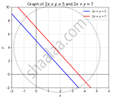 The lines represented by the equations 2x + y = 5 and 2x + y = 7 are parallel to each other.