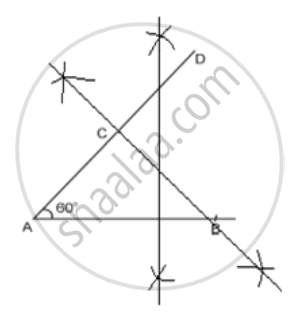 Draw the line segment AB = 5cm. From the point A draw a line segment AD = 6cm making an angle of 60° with AB. Draw a perpendicular bisector of AD. Select the correct figure.