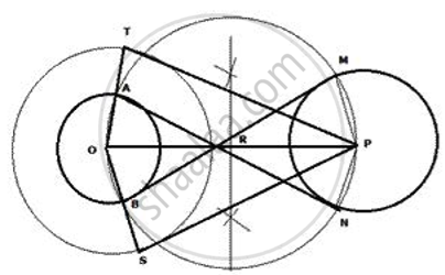 Draw a circle with centre O and radius 3 cm. Take a point P outside the circle. Draw tangents to the circle from P without using the centre and using only ruler and compasses.