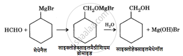 \[\ce{{मेथिल मैग्नीशियम ब्रोमाइड} -> {2-मेथिलप्रोपेन-2-ऑल}}\]