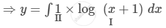 \[ \Rightarrow y = \log \left( x + 1 \right)\int1 dx - \int\left[ \frac{d}{dx}\left( \log x + 1 \right)\int1 dx \right]dx\]