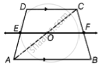 E एक समलंब ABCD की भुजा AD का मध्य-बिंदु है, जिसमें AB || DC है। E से होकर AB के समांतर खींची गई रेखा BC को F पर प्रतिच्छेद करती है। दर्शाइए कि F भुजा BC का मध्य-बिंदु है। [संकेत : AC को मिलाइए]