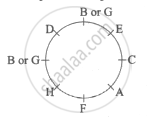 Eight friends A, B, C, D, E, F, G, and H are seated in a circle facing the centre.