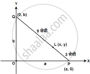 बिंदु L(x, y), PQ को 3 : 9 = 1 : 3 के अनुपात में विभाजित करता है। जब कि P और Q के निर्देशांक क्रमशः (a, 0) और (0, b) हैं।