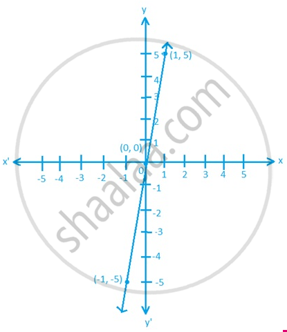 आलेख के लिए x का मान -1, 0 और 1 रखने पर y का मान क्रमश: - 5, 0 और 5 प्राप्त होता है |